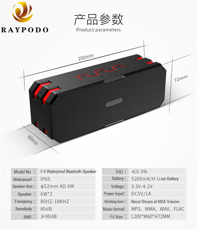 1) Support: Bluetooth, TF card, Line in, Waterproof IP65